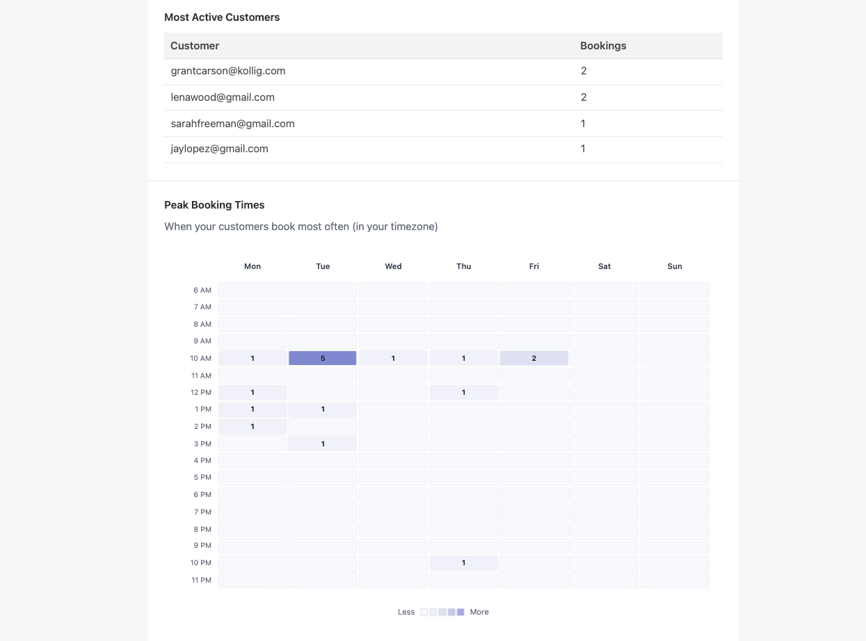 Many businesses discover unexpected patterns here. A service you thought was popular might be booking half as often as a "secondary" offering. Use this data to reorder your booking page, putting your most popular services first and adjusting pricing based on actual demand rather than assumptions.