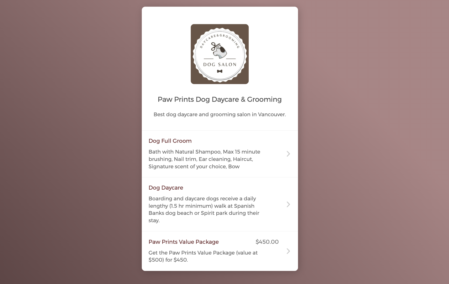 Whether you are offering pet grooming appointments or dog walking sessions, create an automated scheduling flow that showcases your pet services, enables clients to self-book appointments for their pets, and reduce administrative friction.