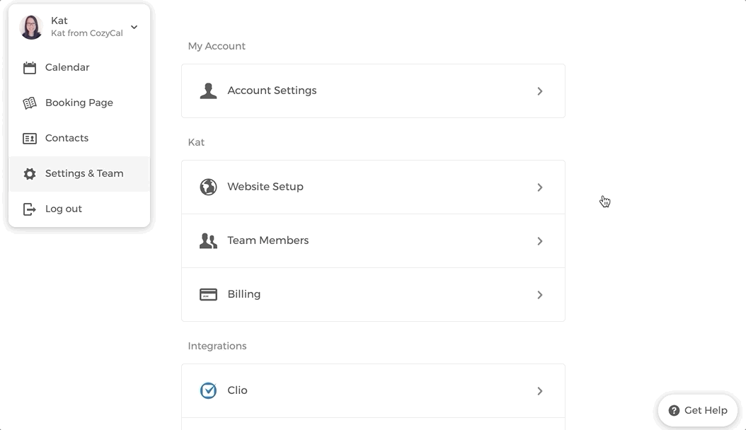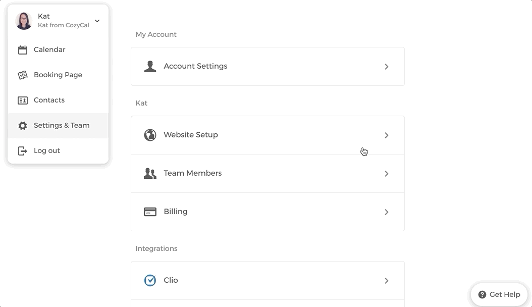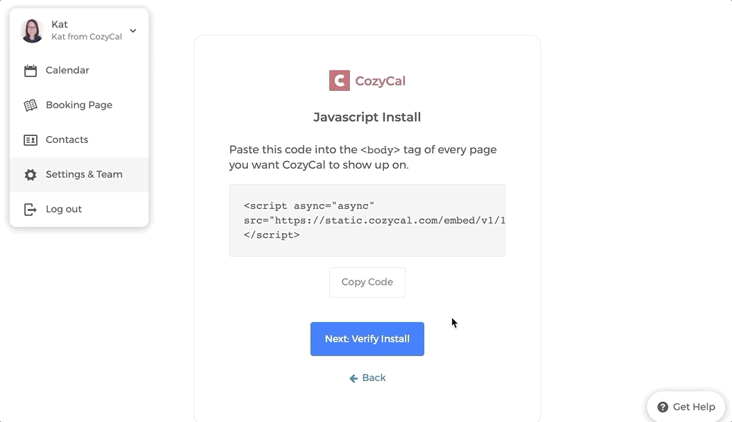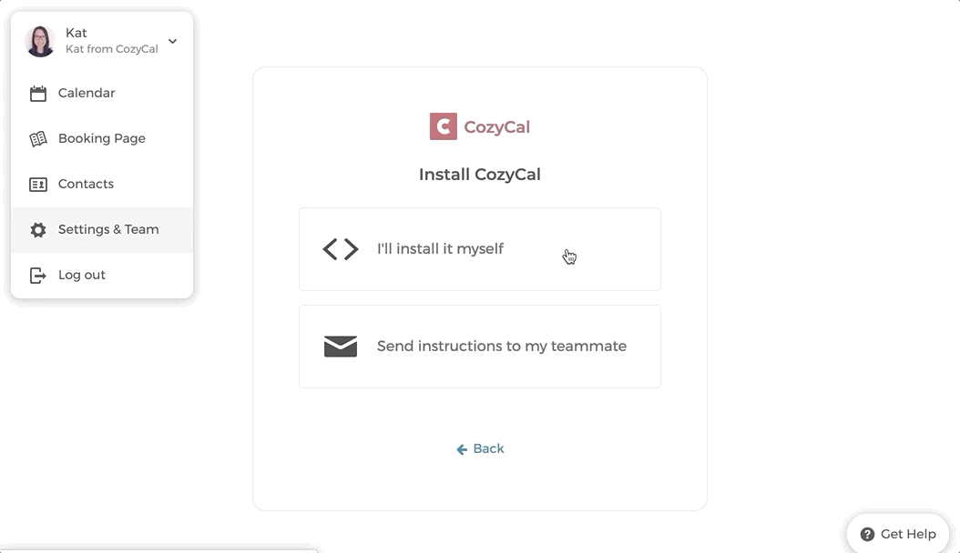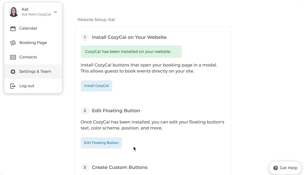 2. Allez dans Paramètres & Équipe → Configuration du site web → Installer CozyCal