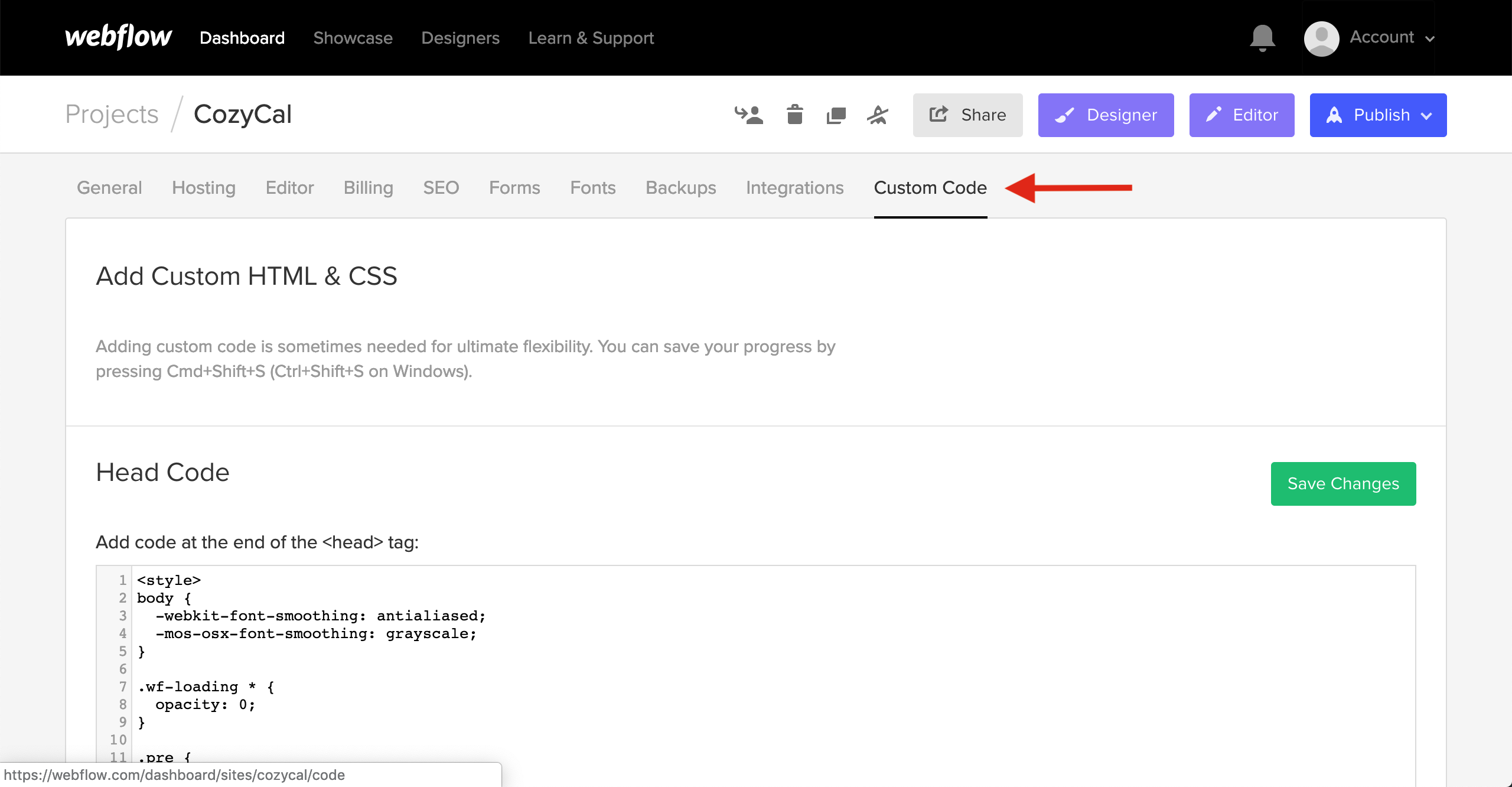 Il est facile d'installer CozyCal sur votre site Webflow. Tout ce dont vous avez besoin est un court extrait de code. Vous pouvez suivre les étapes ci-dessous pour commencer :