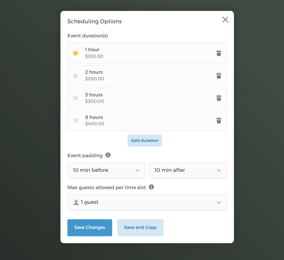 Met Stripe-integratie kun je zelfs prijzen per tijdsduur instellen, wat een extra laag aanpassing biedt. Deze flexibiliteit vergroot de aantrekkingskracht van je dienst voor een breder publiek en maximaliseert boekingen.