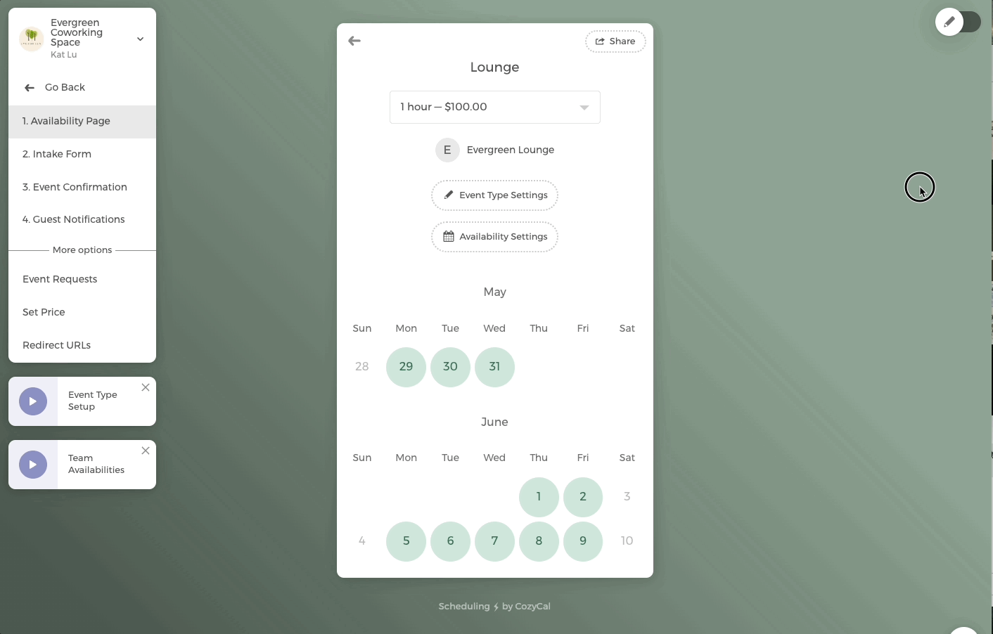 💡 Snelle tip: Met de weergaveschakelaar van CozyCal kun je je boekingspagina bekijken vanuit het perspectief van een klant. Dit helpt je problemen te identificeren en te verhelpen, voor een gebruiksvriendelijke boekingservaring.
