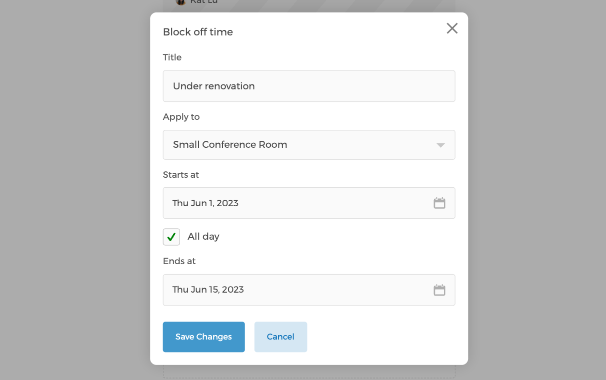 Net als het samenleggen van een puzzel kun je gemakkelijk specifieke tijdslots blokkeren, of zelfs volledige datumbereiken, afhankelijk van je behoeften. Als je bijzondere omstandigheden hebt zoals vakantie-uren, stelt CozyCal je in staat het reguliere wekelijkse schema te overschrijven, zodat de resourcebeschikbaarheid deze unieke behoeften nauwkeurig weerspiegelt en resources niet worden overboekt of misbruikt.