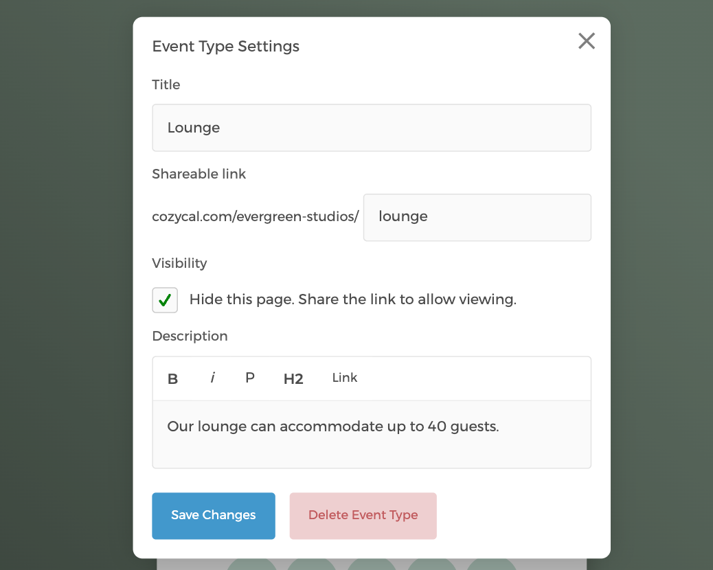 Het voordeel hier is tweeledig: het stelt je in staat specifieke resources te reserveren voor speciale doeleinden of klanten, en het helpt je hoofdboekingspagina overzichtelijk te houden en gericht te houden op openbaar toegankelijke resources.